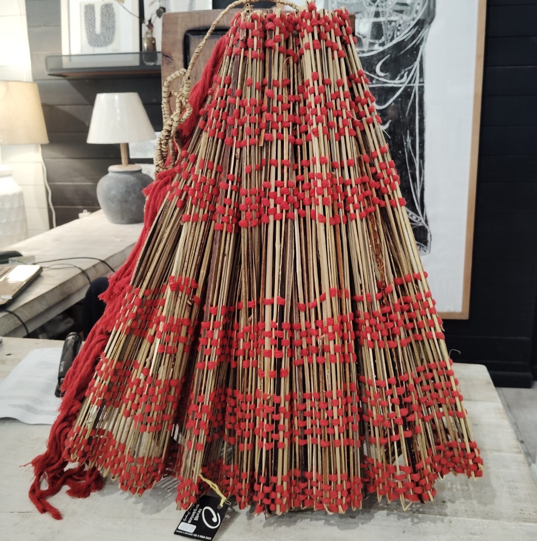 Lampara Colgante Fibra Natural Roja