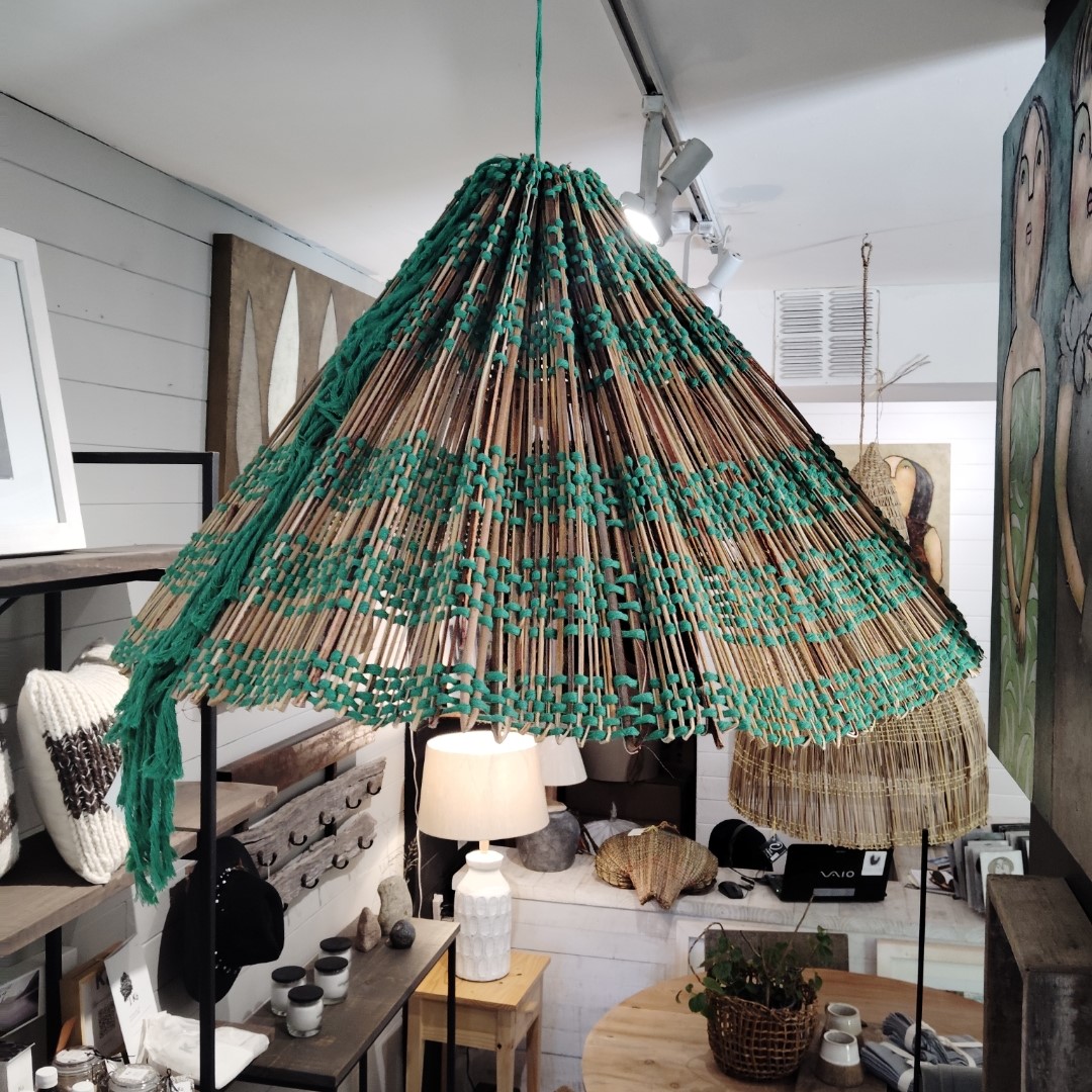 Lampara Colgante Fibra Natural Verde