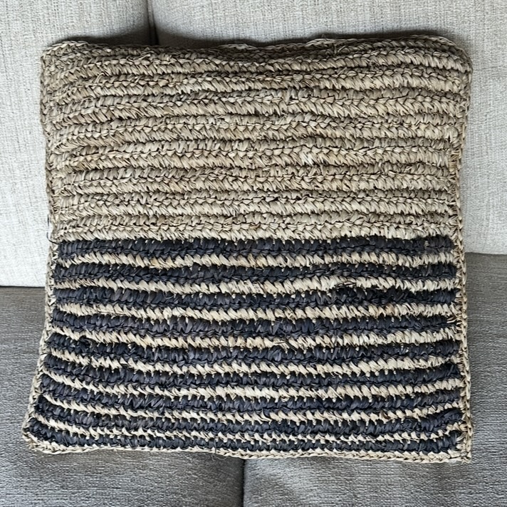 cojin tejido gris con rayas