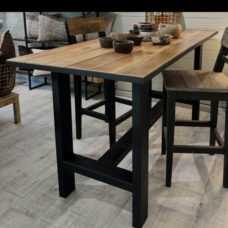 Mesa Bar Cubierta de Madera con Patas de Fierro.1,80 x 75 x 90 cm